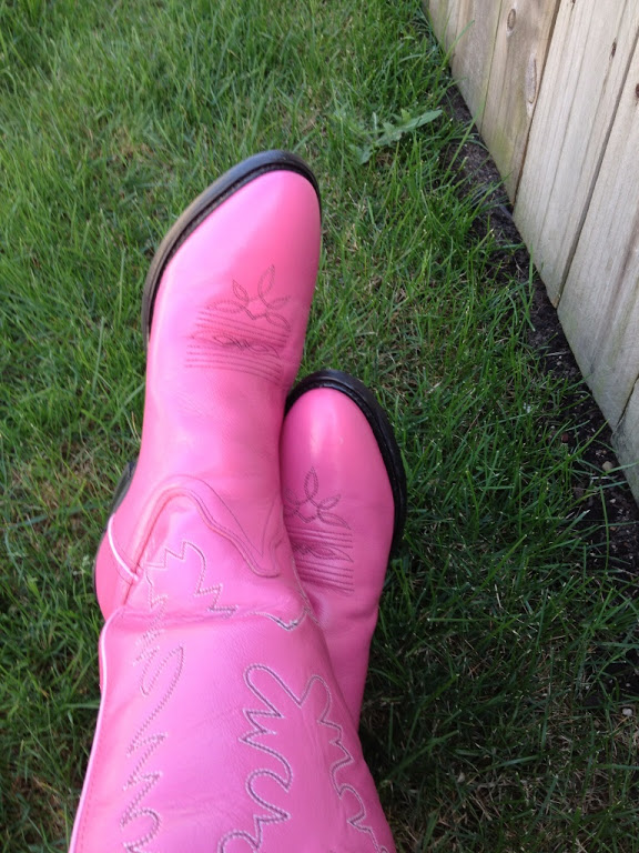 My friend, Molly, has these red cowboy boots. They are so fitting of her personality. They embody her spirit. Molly is the founder and vision keeper of Girls on the Run. This program has given me so much and changed my life so when I saw Molly’s boots I wanted to share in that spirit. I searched and searched for my own ‘personality’. I soon found it in the form of hot pink cowboy boots so I ordered them…hoping they would be as cool when they arrived as they seemed online.