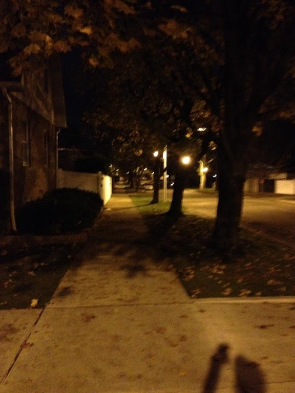 I was with my puppy in the dark, leaves crunching under our feet and cool air filling our lungs. I breathed out the crap that filled my head, heart and lungs breathing in the cool air and fresh attitude. The sights and smells of fall filled my senses.