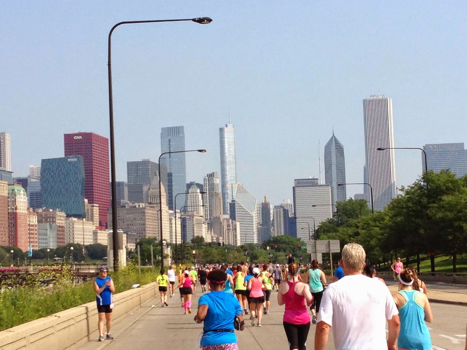 Coming off the Lakefront path I got some water and as I looked up I saw a runner in front of me wobble and then fall down…out cold. First responders were there in seconds taking care of her but it was frightening. As I headed up the final incline and towards the finish line the young woman in front of me tripped and fell on all 4’s. I came up next to her and asked if she was ok and she looked at me with tears, “I’m fine” she whimpered and blood spilled from her hands and knees. I took off my water bottle and got out a paper towel and washed her off. She told me she was tired and worried that she was supposed to call her mom when she finished. I told her, “Momma is right here….she sent me” She laughed and we started running together. She told me she would be sure that she and her mom would pray for me, her angel. Well, alrighty then! I love prayers!