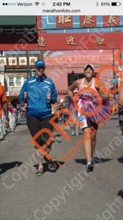 We got to Chinatown together and I knew 2 of my friends, Sarah and Amy,  would be there so I started to look for them. Before I could see them, they had jumped onto the course and were on either side of me. Boy did I need them!  The pain was getting worse but I knew that I could finish…maybe not fast but I could finish.  They ran with me while I  yelled and complained and whined and then they just let me be quiet. They knew just what I needed and for that I am forever grateful. I do not know how I would have gotten through that stretch without them.