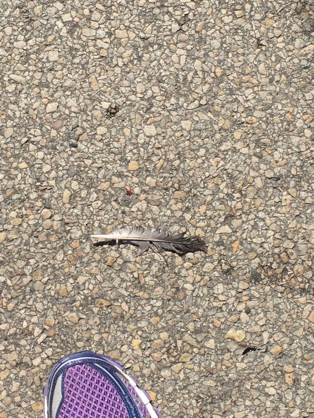 I ran through Pilsen tired and in pain.  The pain in the small of my back would become excruciating and then I would walk until it subsided.  I looked down and saw a feather…a symbol of  my dear friend Molly, as well as something bigger than me …. I knew I had to keep going despite the pain.  Passing my old apartment at 18th and Halsted, I heard my name. I turned to see a young woman crying. Rebecca  is a  GOTR SoleMate that I consider a friend. She was in as much pain as I was so I put my arm around her and we moved forward together…one step at a time.