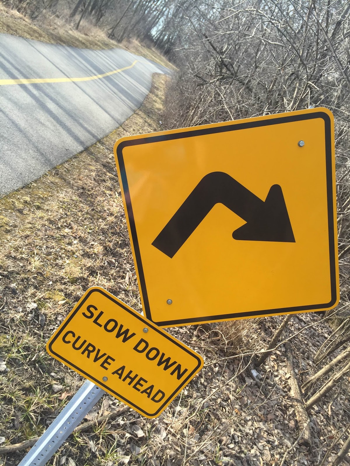 Slow down. Curves ahead. Life, life roads and trails, often has curves. Some curves are so sharp if we don’t slow down, we veer off the road into a ditch.