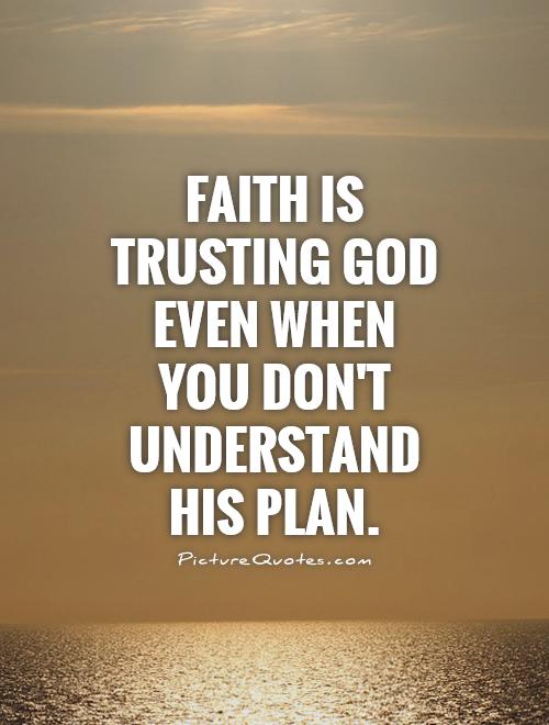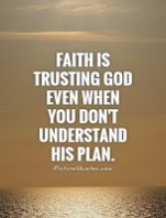 Faith is trusting in God’s plan. I may not understand the plan or like it but I have faith.