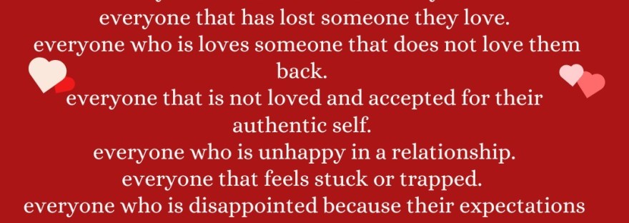 Valentine’s Day is a day that is painful for some for so many reasons. It is a day that is filled with sadness for some people. It is a day that can be lonely for others. It is a day some loathe and some dread.