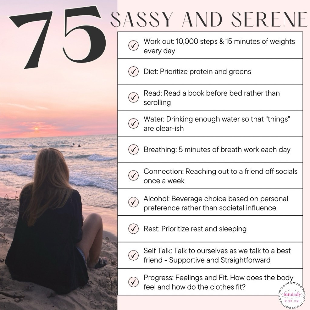 75 HARD? Yeah, that’s just not my vibe. I mean, who’s got time to hit the gym twice a day? And don’t even get me started on chugging a gallon of water without access to a bathroom all day. It’s like setting yourself up for dehydration disaster. Sure, I dig non-fiction reads, but my brain craves a good fiction fix too. Variety keeps it sharp, you know? And sticking to a diet with zero cheats? Nah, I’m all about balance. That kind of rigidity just breeds other unhealthy habits. So, I decided to craft my own version of a 75-day challenge, something a bit more sassy and serene for the upcoming summer. Starting March 4th, ending May 18, a week before Memorial Day, I will be all about embracing a lifestyle that’s both fabulous, fit and chill. The stuff on my list? Well, they’re things I aim to do every day anyway, but sometimes life gets in the way. So here is the Sassy and Serene list: *Work out: 10,000 steps & 15 minutes of weights every day *Diet: Prioritize protein and greens *Read: Read a book before bed rather than scrolling *Water: Drinking enough water so that “things” are clear-ish *Breathing: 5 minutes of breath work each day *Connection: Reaching out to a friend off socials once a week *Alcohol: Beverage choice based on personal preference rather than societal influence. *Rest: Prioritize rest and sleeping *Self Talk: Talk to ourselves as we talk to a best friend – Supportive and Straightforward *Progress: Feelings and Fit. How does the body feel and how do the clothes fit? By putting it out there for everyone to see, I’m holding myself accountable. Plus, it’d be awesome if some of you joined in too! Ready to strut into summer with a whole new level of sass and serenity? Count me in, and I hope you’re on board too! Let’s make this summer one to remember. Peace. #tutulady #forwardisapace